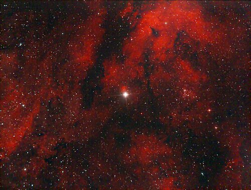 Die Region um den Stern Sadr ist angefüllt mit enorm viel ionisiertem Wasserstoffgas, das wunderbar rot leuchtet. Auch ein offener Sternhaufen NGC 6910 ist rechts von Sadr zu sehen. Den auch als Schmetterlingsnebel bekannten Emissionsnebel findet man im Index Catalog unter der Nummer IC1318, ein über 100 Lichtjahre großes Objekt. Entstanden ist das Bild am 28 September 2025 mit einem 6 Zoll TS Photon Newton bei reduzierter Brennweite auf 444mm. Mit dem Starizona Nexus Komakorrektor konnte eine enorme Lichtstärke von F=2,88 realisiert werden und die Belichtungsdauer (ca. 30 Minuten) halbiert werden.
